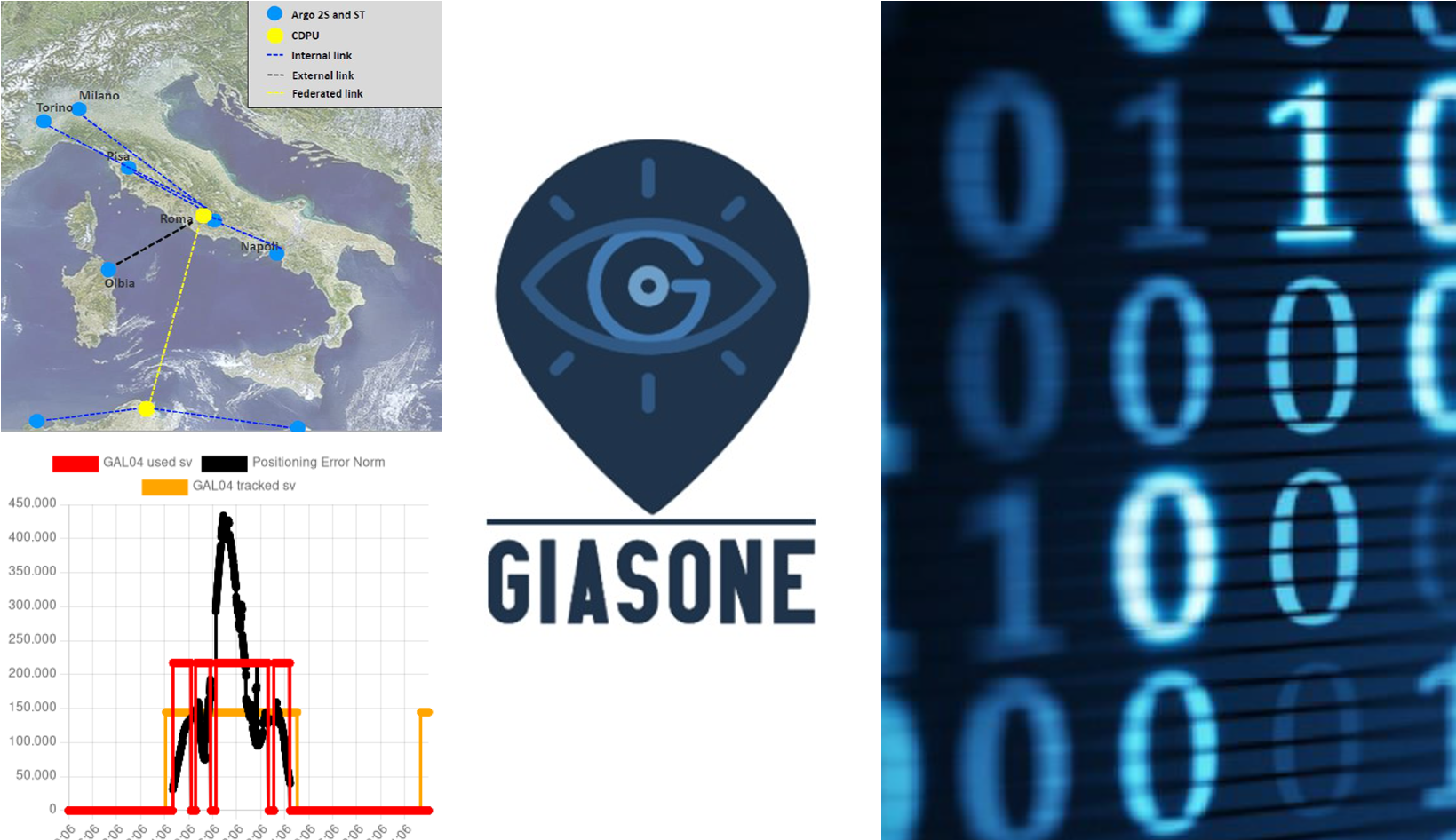 GIASONE's mission is to improve awareness of the GNSS status, including the detection of possible anomalies that could affect the GNSS and the consequent emission of timely warnings to notify users. The services offered by GIASONE can be divided into three groups: