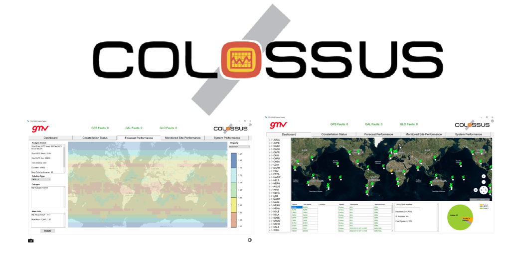 The COLOSSUS platform offers a commercial service to provide users with current GNSS status (satellite status, planned outages, almanac health), broadcast status (last message received, health flag, SISA) and monitored status (detection of faults, loss of satellite signals) to warn users of issues which may affect performance in real time. Depending on customer needs, the service can generate monthly (or longer term) statistics reporting to compare with GNSS performance specs and can generate forecast performance values using defined requirements to give users information on expected performance.