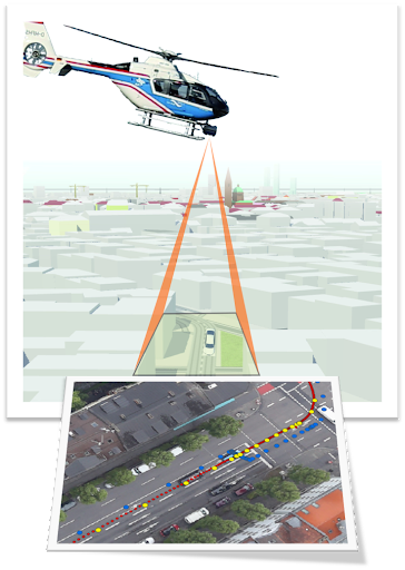 data from a helicopter which are precisely georeferenced with Ground Control Points. The images show the vehicle roof with the signalized GNSS receiver antenna. Together with a precise height model of the road surface, the absolute position of the GNSS receiver in world coordinates can be derived from the position in the image. The method aims to provide high-precision reference trajectories in all environments, including GNSS-denied ones, to facilitate the calibration and validation of positioning systems for autonomous driving.